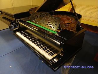 Prestigioso pianoforte costruito da Julius Bluthner, pluripremiato costruttore di pianoforte di Lipsia (Germania). Lo strumento, realizzato attorno al 1885, è caratterizzato da soluzioni tecniche interessanti e innovative. L'arpa è in ghisa monofusa, assai all'avanguardia per l'epoca. Le corde sono incrociate nei bassi; anche la sezione più bassa delle corde d'acciaio, che poggia su un ponticello dedicato, è incrociata nella stessa direzione dei bassi. Assolutamente innovativo l'introduzione del brevetto Aliquot, sistema che aggiunge una corda negli acuti (portandole a quattro) che suona unicamente per risonanza: questo permette, nelle intenzioni del costruttore, una maggiore profondità e modulabilità della timbrica. La parte meccanica è in condizioni buone. La meccanica è di tipo Bluthner-patent senza doppio scappamento. Nonostante ciò risulta molto agile e veloce nella ripetizione. Arpa, tavola e somiere sono in buone condizioni e rendono lo strumento pronto per essere suonato. La sonorità dello strumento è imponente. Bassi molto rotondi si accompagnano ad un registro centrale molto chiaro e definito. La parte degli acuti e dei cantini è brillante e profonda. |